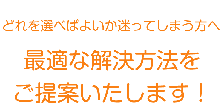 豊富な経験を活かし、ご希望やご状況に応じた最適な解決方法をご提案いたしますので、まずはお話を聞かせてください。